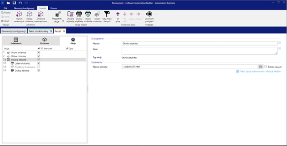 NiceLabel PowerForms Suite zawiera dodatkowo moduł Automation Builder w wersji Easy, dzięki któremu można inicjować wydruk automatycznie – w całym procesie etykietowania.